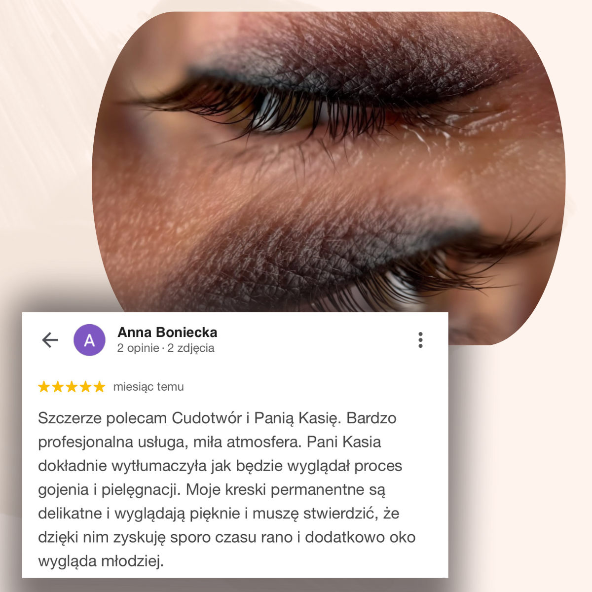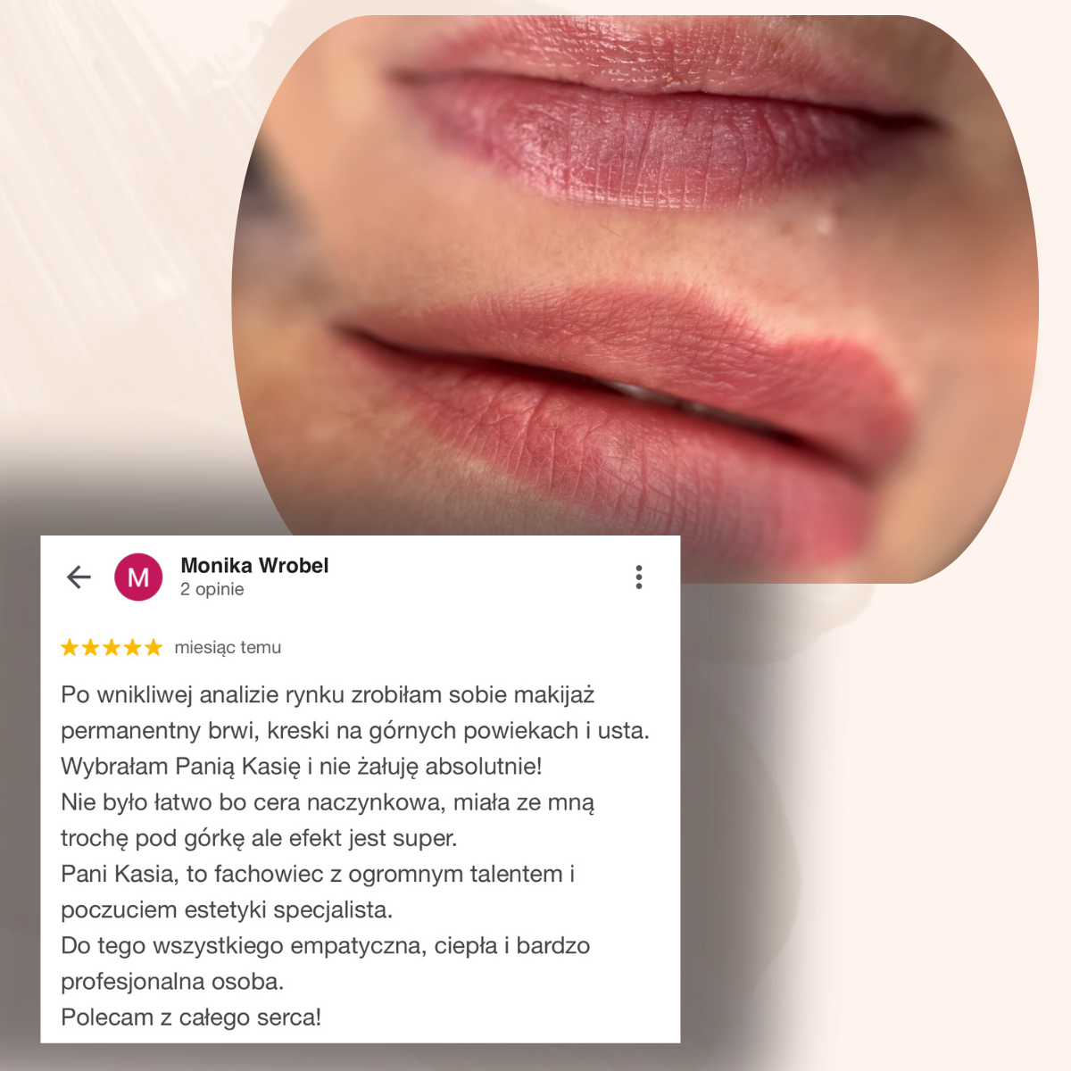 Pigmentacja w moim wykonaniu jest delikatna, nie jest to tatuaż na całe życie i nie wprowadzamy go tak głęboko. Dowodem jest to, że często klientki zasypiają podczas zabiegu.