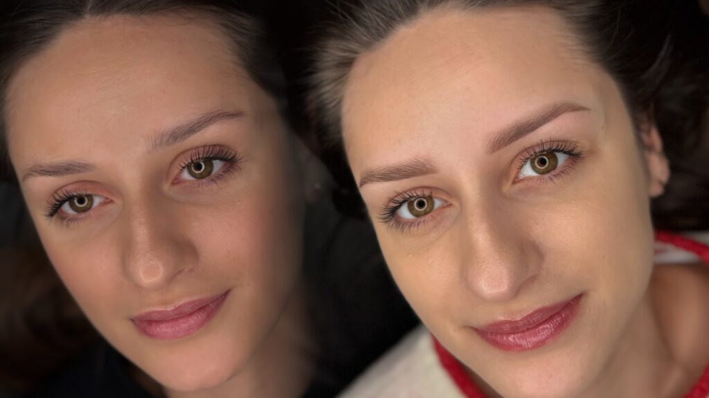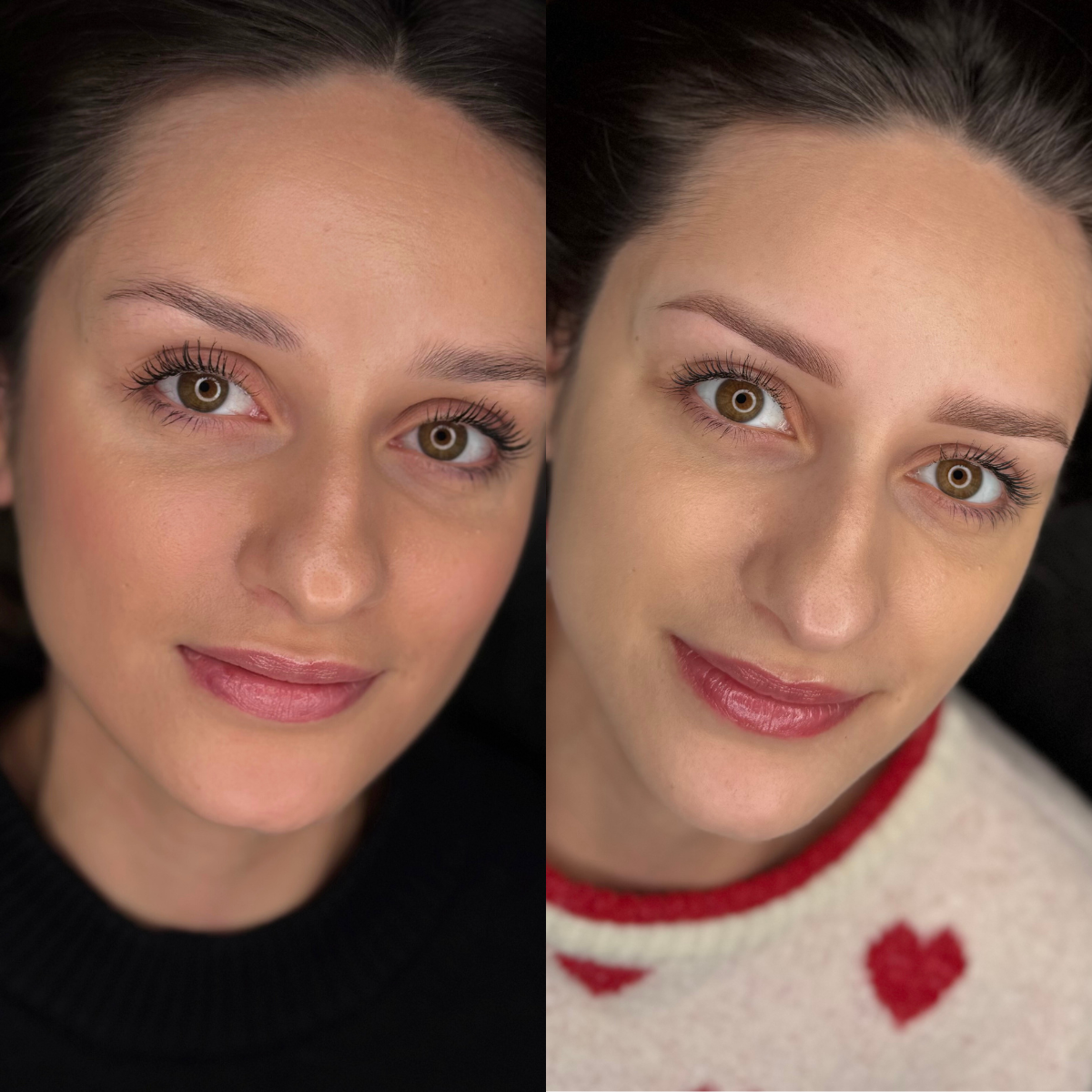 Pierwszy zabieg wykonuję zawsze delikatniej, abyś mogła się do nich przyzwyczaić. Jeśli jest potrzeba efekt wzmacniamy i poszerzamy na dopigmentowaniu.